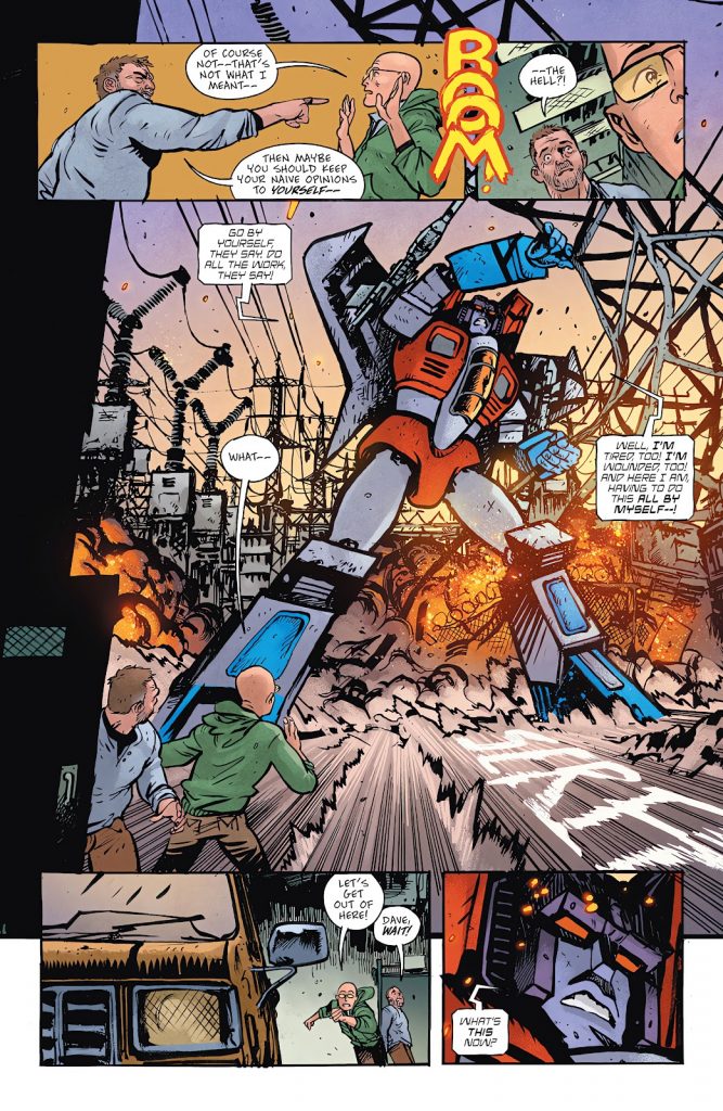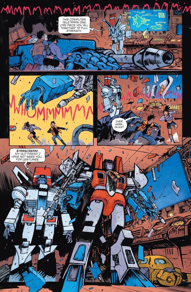 Por otro lado, Starscream busca energon o algo para poder procesarlo. Tiene que ir sólo al ser el que más energon tiene por el momento. Aquí llega a una planta de energía donde Sparky y Davey estaban teniendo una discusión.