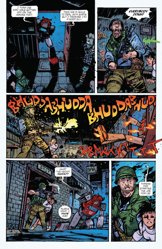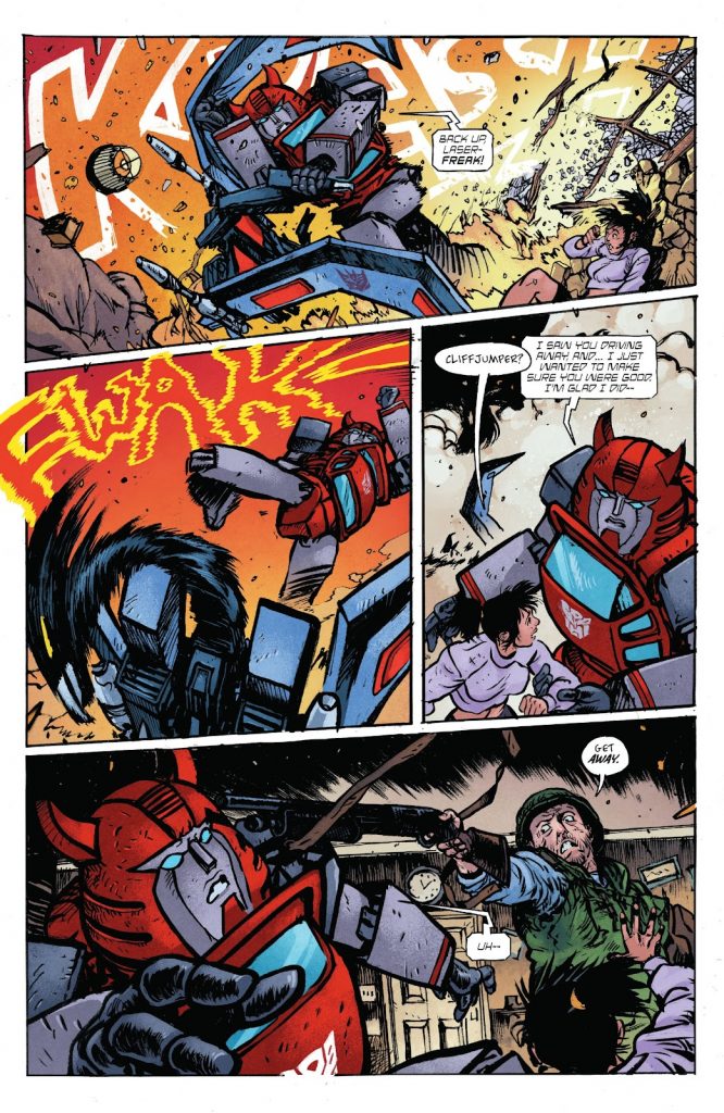 El buen Cliffjumper los alcanza y trata de empezar de nuevo con los humanos… pero el pobre sólo recibe más balazos de todo calibre. Y para empeorar las cosas, llega un invitado inesperado.