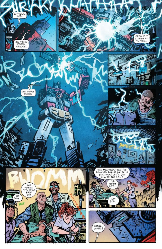 Es una victoria amarga. El hospital se ha quedado sin electricidad, dejando a la muerte no sólo a Spike sino a muchos pacientes. A pesar de la negativa de Ratchet, Optimus abre la Matriz y usa el poco poder que queda dentro para reactivar todos los equipos del hospital. Otro diálogo interesante: