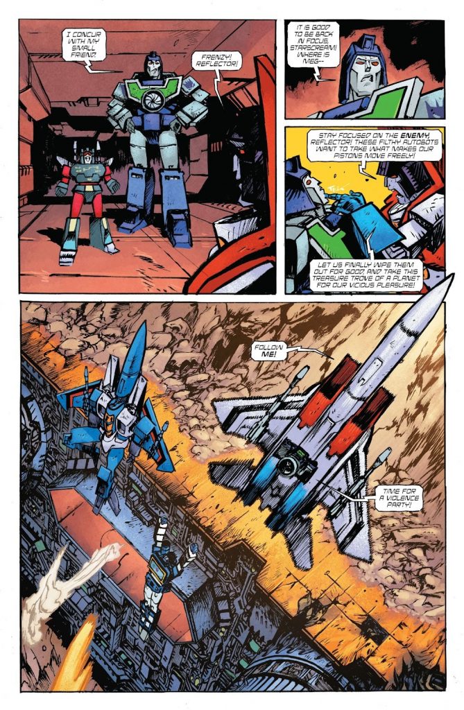 Reflector y Frenze son reactivados, y se les recuerda no muy amablemente no mencionar a Megatron y recordar que Starscream es el líder ahora. Detectan que los Autobots tienen una nueva fuente de energía, así que parten a atacarlos.