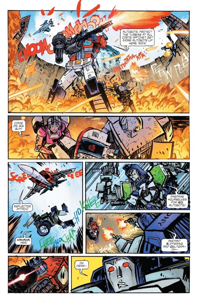 Optimus se despacha rápidamente a Starscream y sus compinches, pero se da cuenta de que siguen en desventaja contra los Decepticons que siguen siendo reactivados. A Prime no le queda otra que destruir a Teletraan-1 él mismo para que no siga reactivando enemigos.