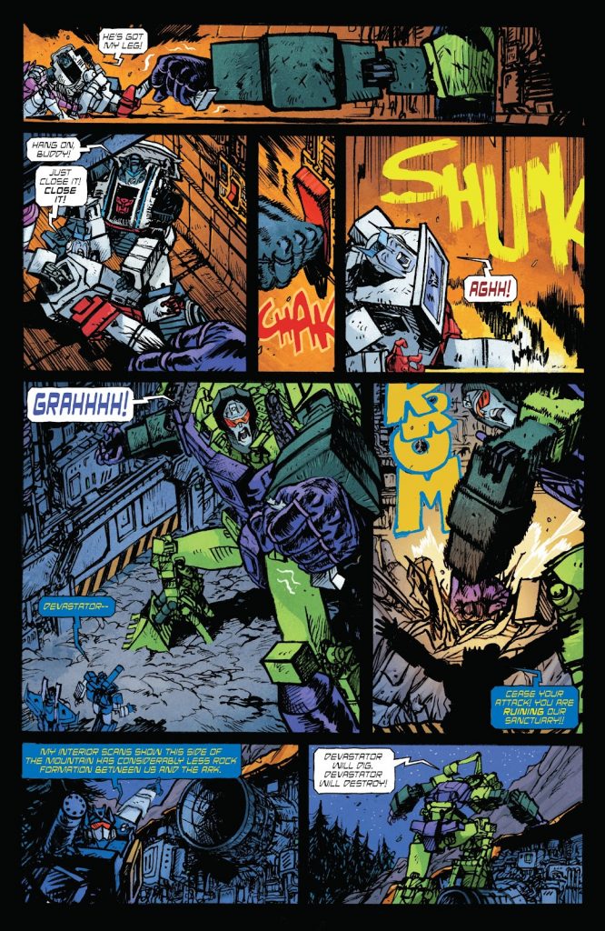 El bruto gigante quiere aplastar todo, pero Soundwave le hace notar que perderían el Arca como base. Envían a Devastator a atacar por la parte superior de la montaña, que tiene menos roca. La cosa no pinta nada bien para los pobre Autobots.