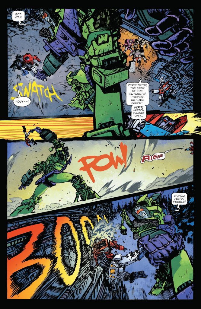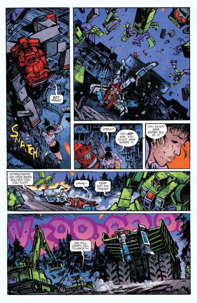 Un Devastor le cae en la cabeza a Starscream, y cae con este. Cliffjumper salva a Carly con lo justo. Pero ella lejos de agradecerle, le reclama que pudo haber acabado con todo de una vez. Devastator cae desarmado, y los Constructicons emprenden la retirada llevándose a un maltrecho Syarscream.