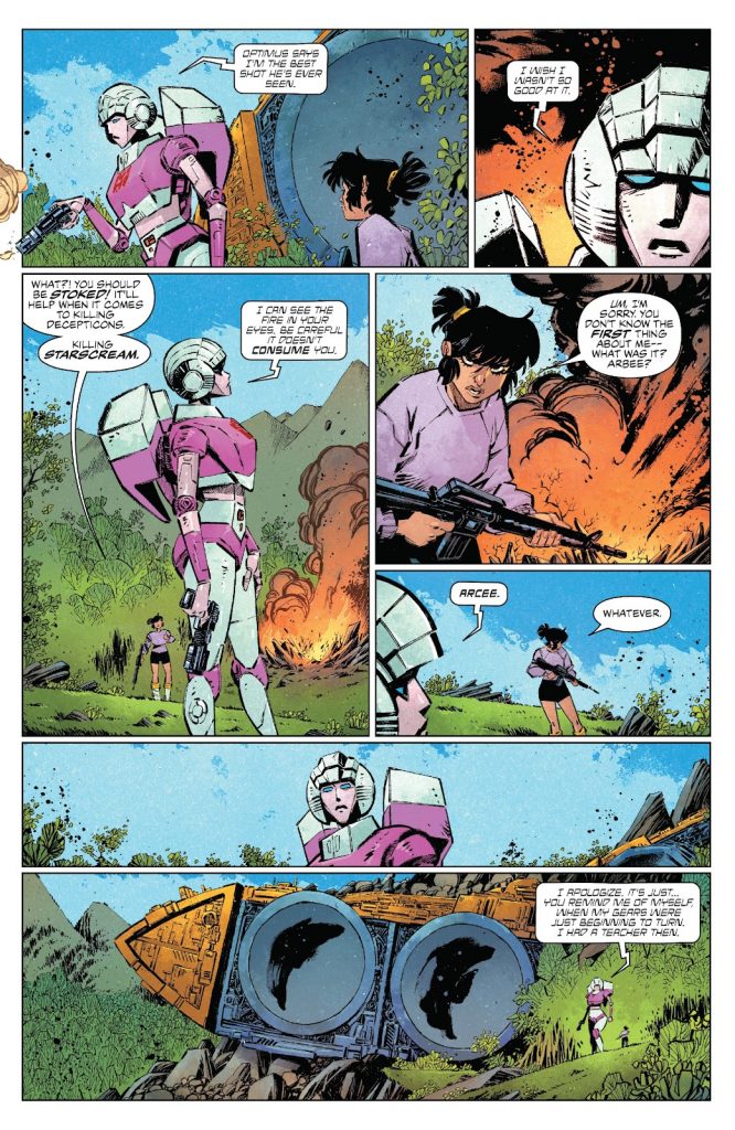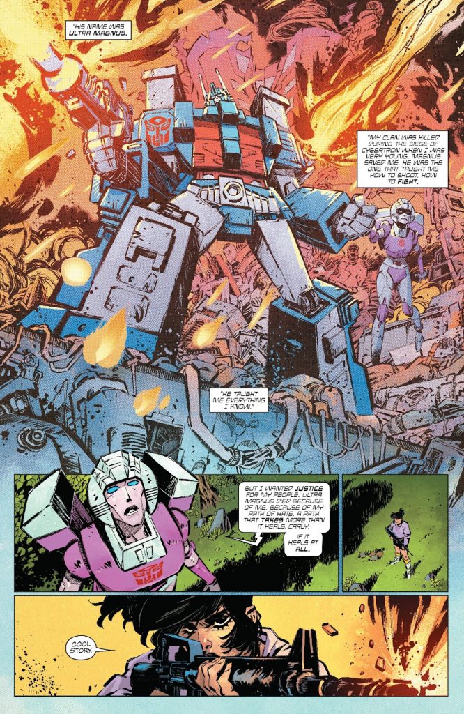 En la base Autobot, Arcee y Carly tienen un acercamiento. Temerosa de la nueva actitud de furia y venganza de Carly, Arcee le cuenta su historia. De cómo fue salvada por Ultra Magnus durante la guerra, y cómo este le enseñó como ser una guerrera de primera.