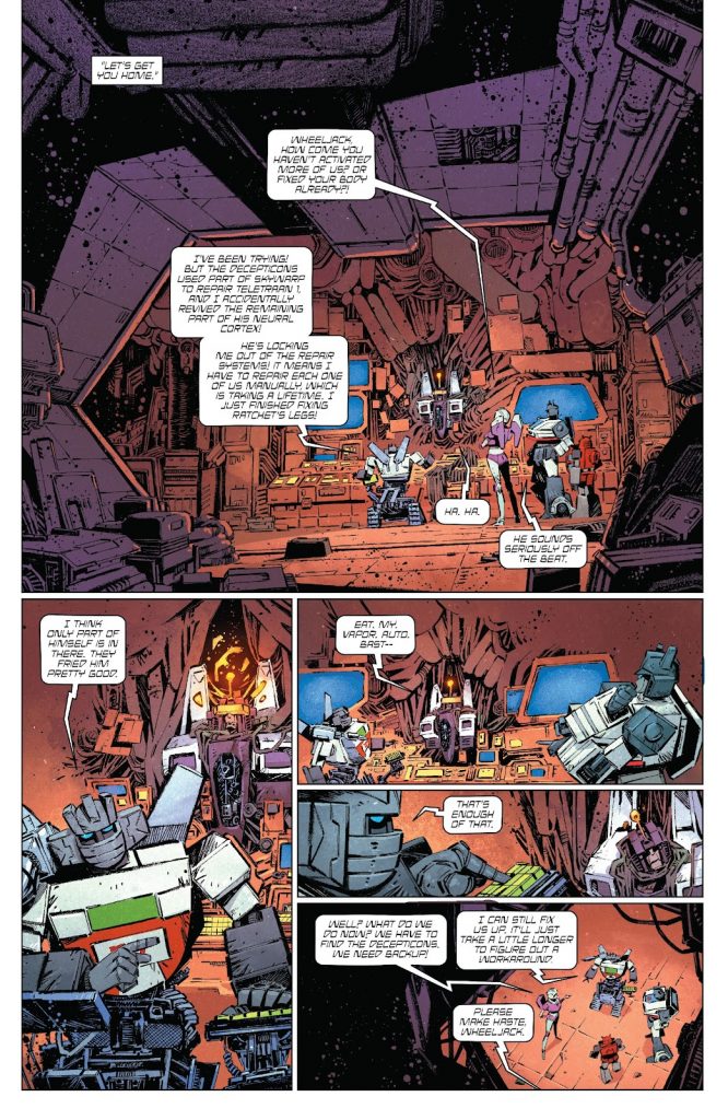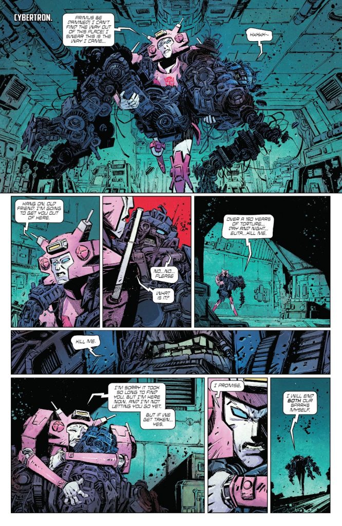 Volvemos a Cybertron, donde Elita-1 recupera los despojos del milagrosamente aún funcional misterioso Autobot. Elita busca una salida, pero el pobre Autobot sólo le pide que lo maten… ni su cuerpo ni si mente han podido soportar 150 años de tortura día y noche.