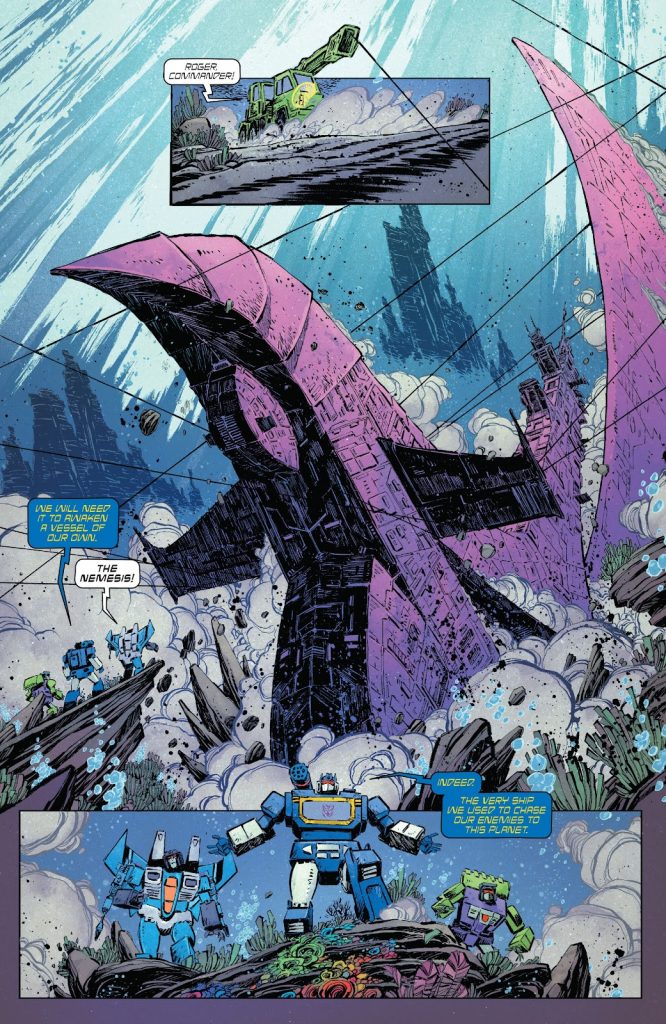 El plan de Soundwave se revela. Bajan al fondo del mar con los restos del portaaviones. Los Constructicons hand recuperado su nave, la Némesis. Ahora usarán el reactor nuclear del destrozado portaaviones para reactivar los recursos de su nave.