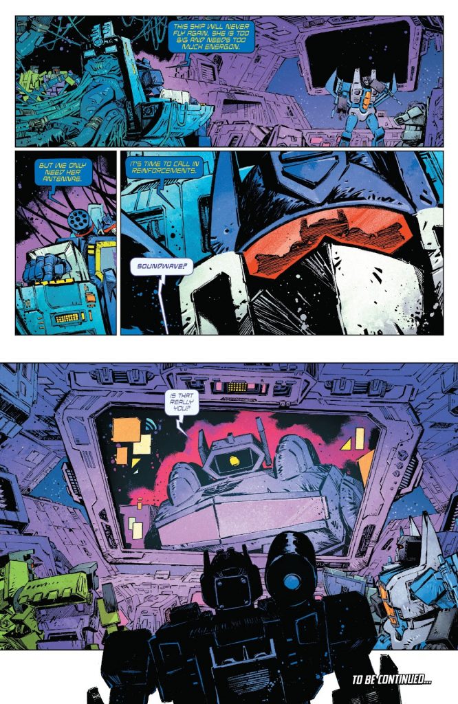 Soundwave sabe que la Nemesis no volará de nuevo. Es demasiado grande y necesita mucho energon, pero ahora sólo necesita que funcione su antena de comunicaciones. Es hora de pedir refuerzos…