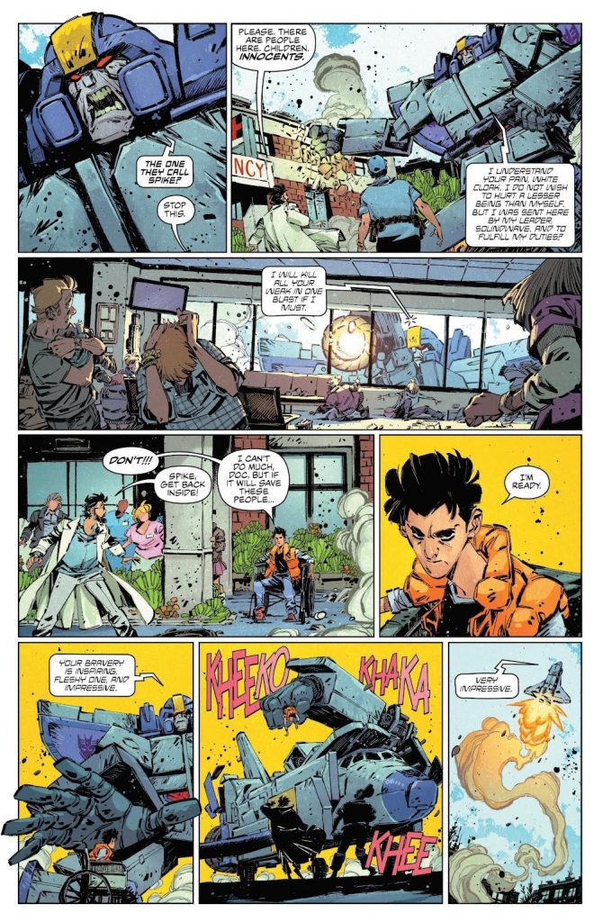 En tierra firme, Spike se entera que su columna quedó comprometida por los disparos que recibió, y es incierto si volverá a caminar. Pero no tiene tiempo de lamentarse. Astrotrain ha llegado y amenaza destruir el hospital y todos los que este dentro, a menos que le entreguen al humano Spike (por orden de Soundwave).