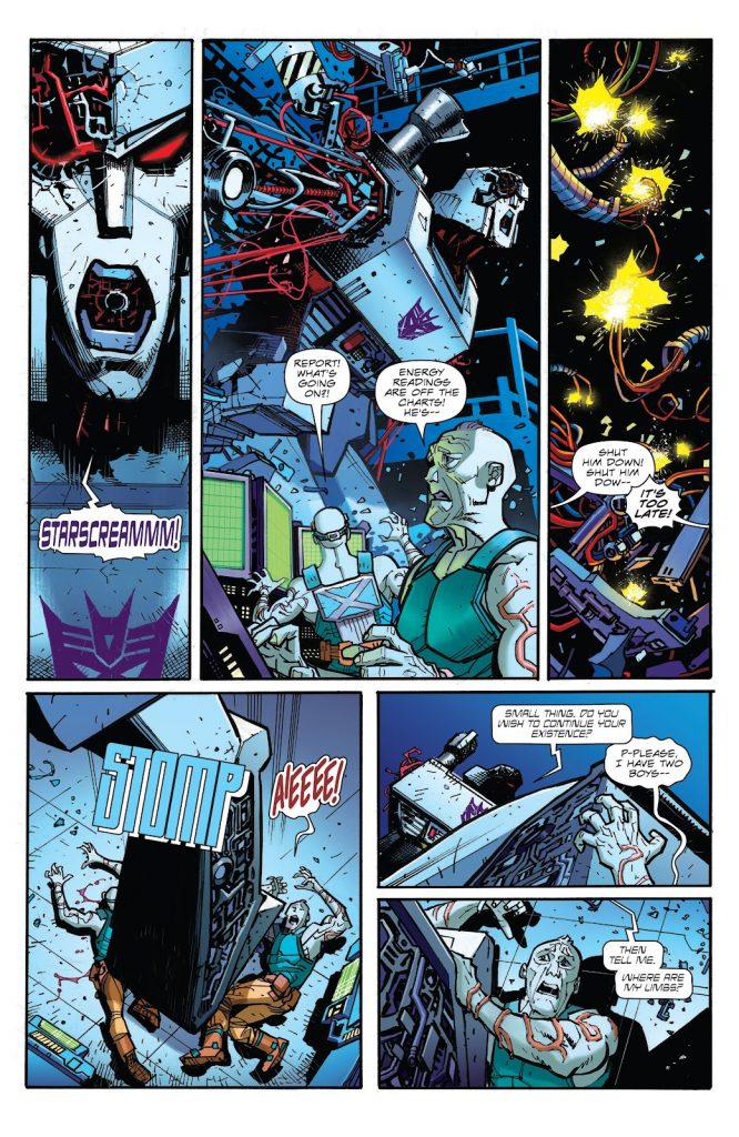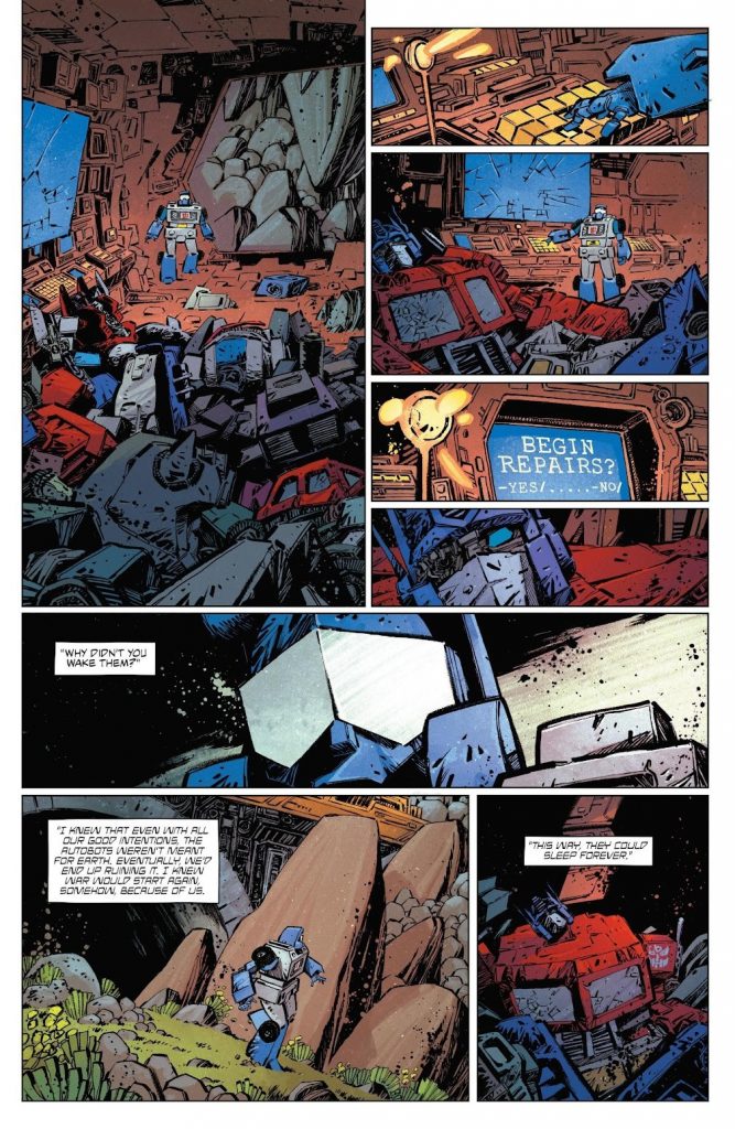 Beachcomber encuentra a todos los Transformers desactivados, y justo cuando iba a activa a Teletraan para que los repare… DECIDE NO REACTIVAR A NADIE.
