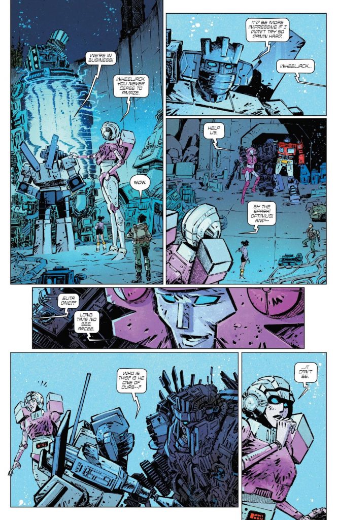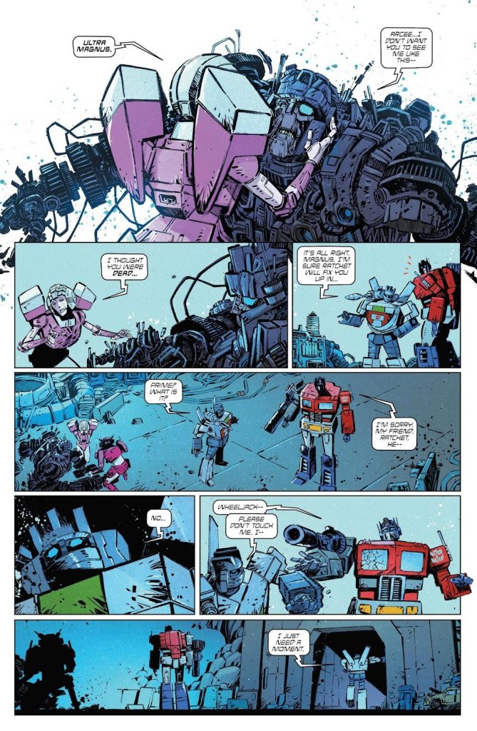 Optimus y Elita-1 logran regresar a la base Autobot. Arcee y Elita-1 se sorprenden de volver a verse luego de tanto tiempo. Finalmente se nos revela quién es el misterioso Autobot rescatado desde Cybertron…. era… ULTRA MAGNUS… o mejor dicho… lo que queda de él.