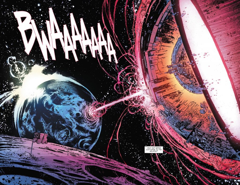 Se activa un portal… y Cybertron mismo es transportado cerca de la Tierra.