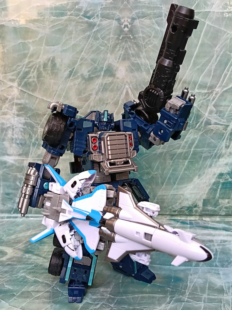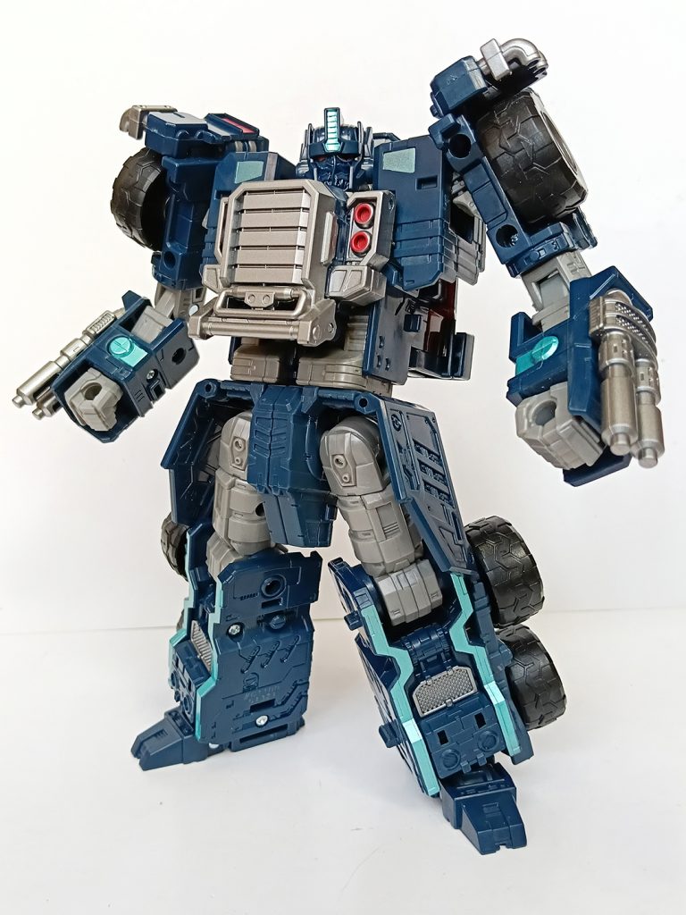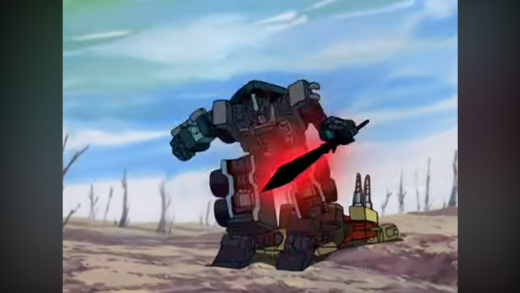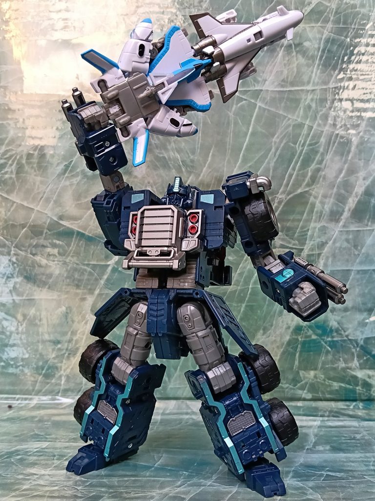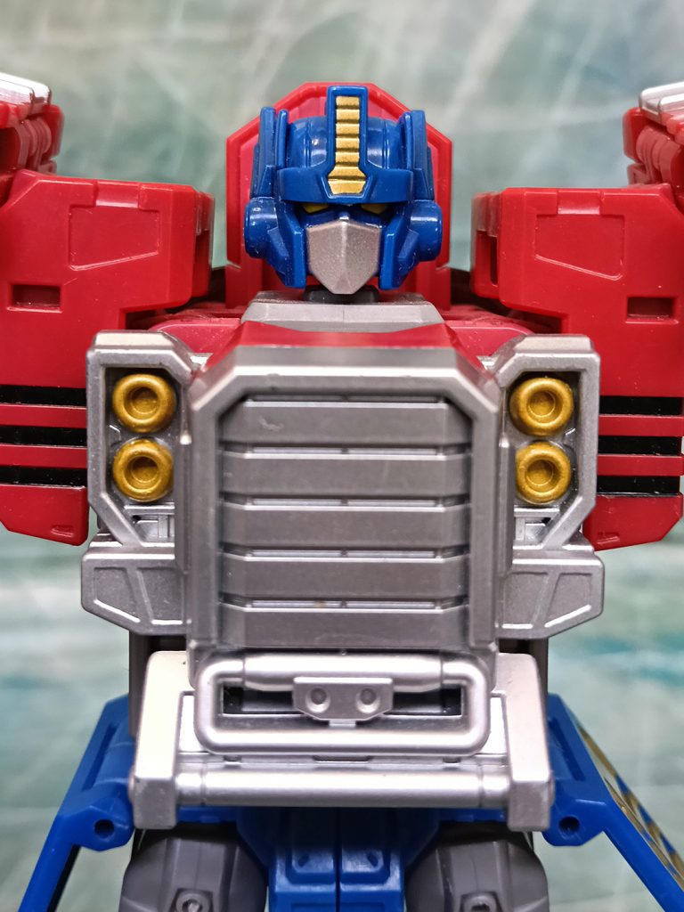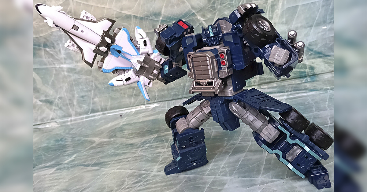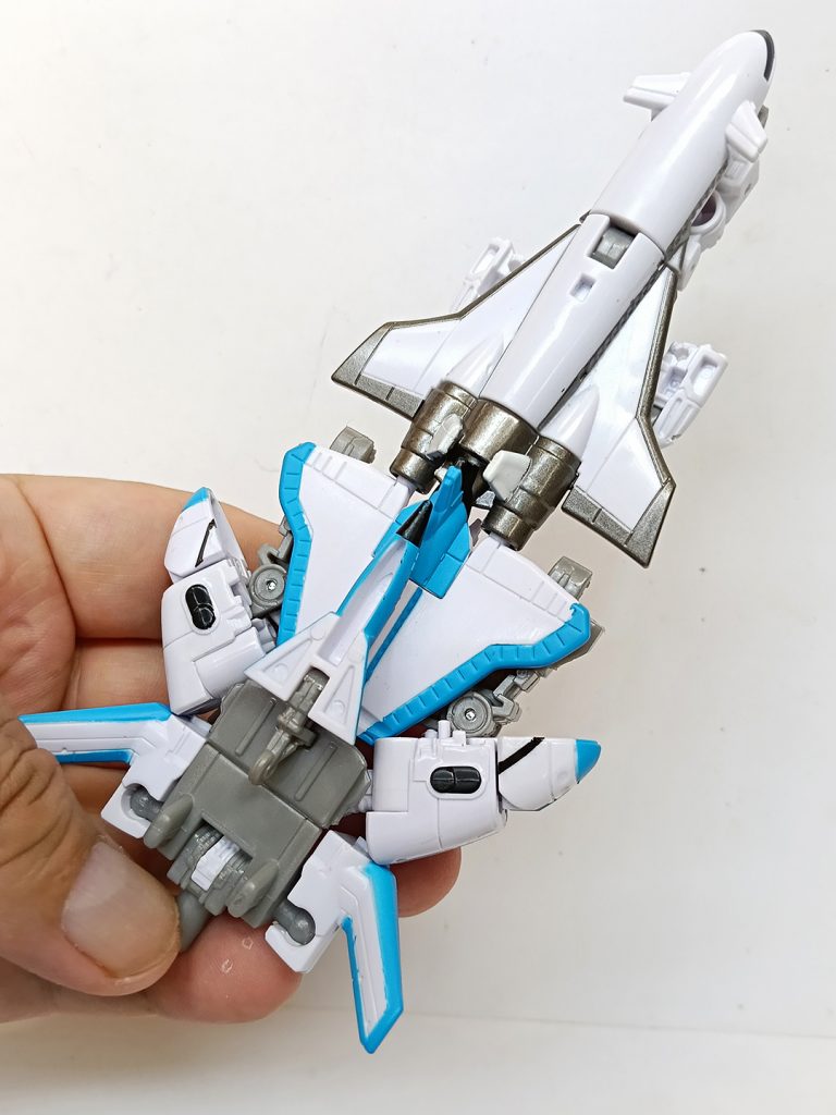 Su modo alterno está basado en un diseño conceptual para un transbordador espacial. Se ve sólido aunque tiene el mango de la espada visible, pero el original también era así. El modo robot parece el gordo del salón, pero finalmente tiene posabilidad que el original no tenía. Un dato rarazo… tiene articulación de cintura, pero queda anulada porque la cintura tiene una pieza al centro que inmoviliza el movimiento.