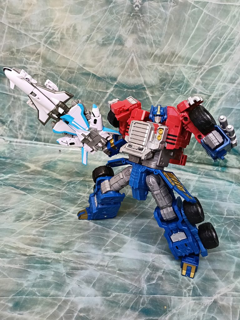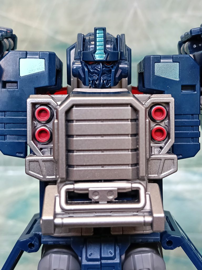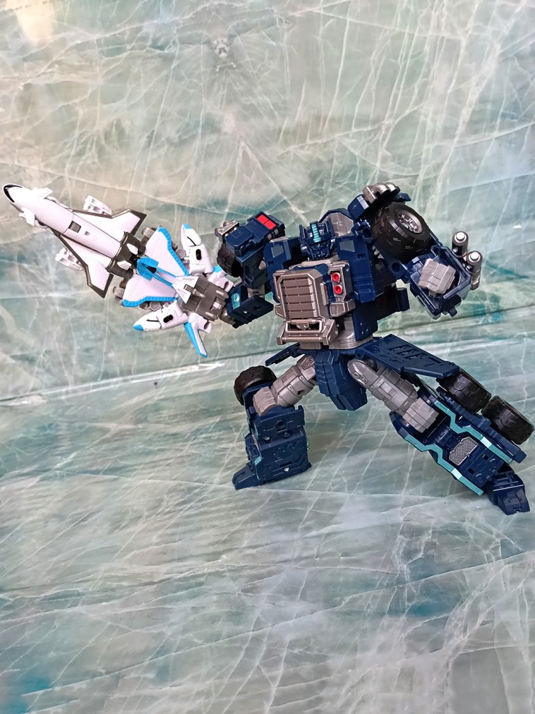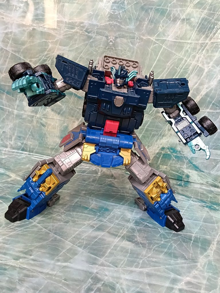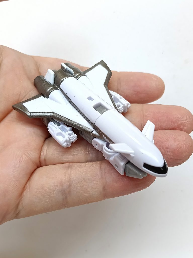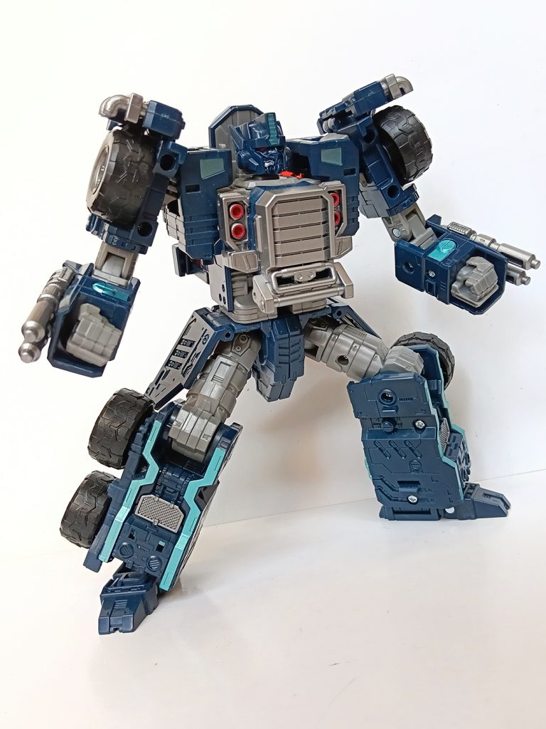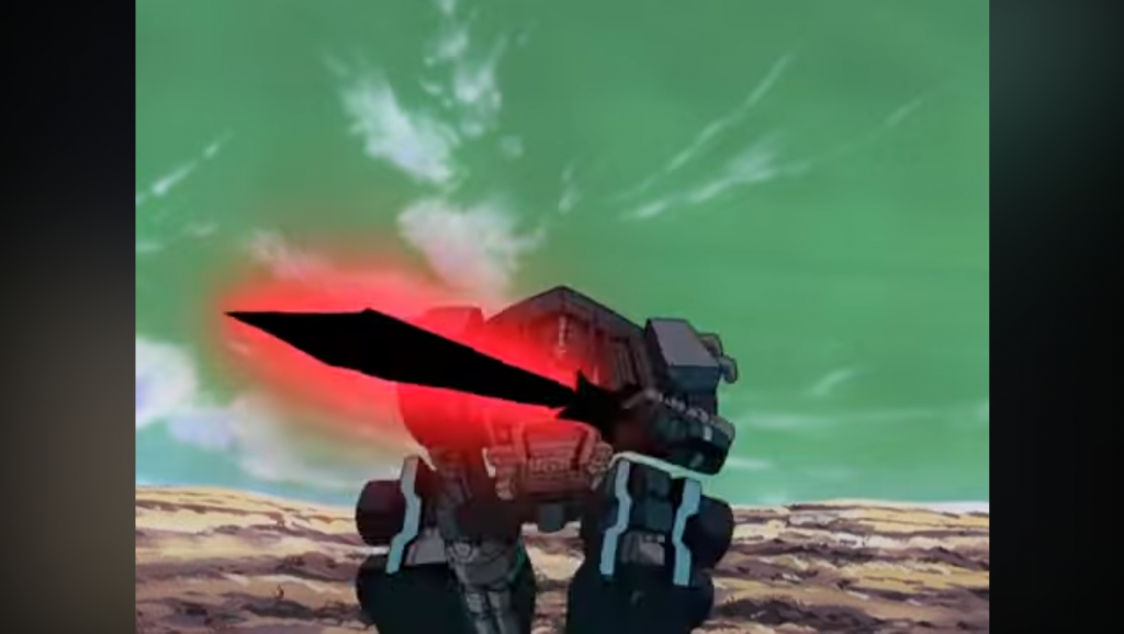 Su modo alterno está basado en un diseño conceptual para un transbordador espacial. Se ve sólido aunque tiene el mango de la espada visible, pero el original también era así. El modo robot parece el gordo del salón, pero finalmente tiene posabilidad que el original no tenía. Un dato rarazo… tiene articulación de cintura, pero queda anulada porque la cintura tiene una pieza al centro que inmoviliza el movimiento.