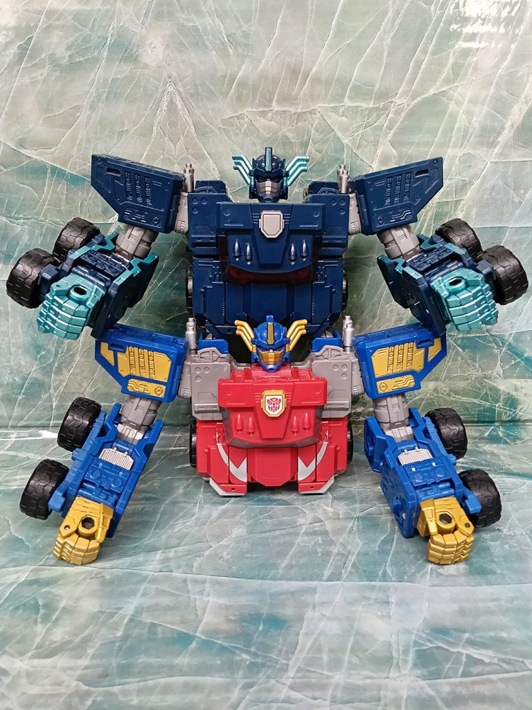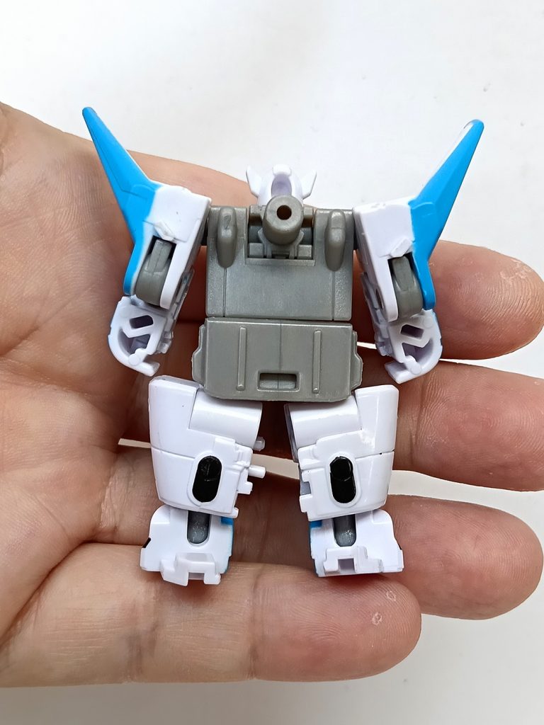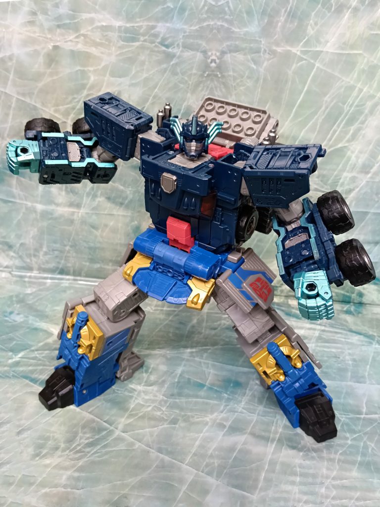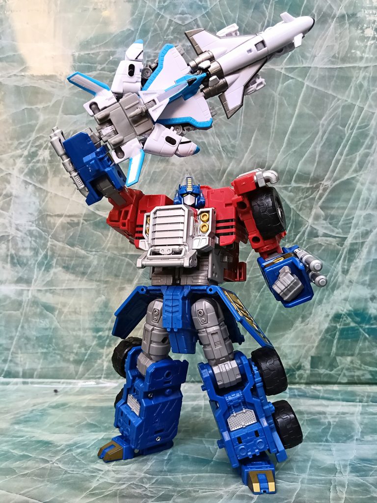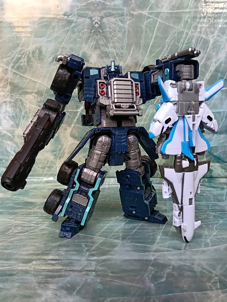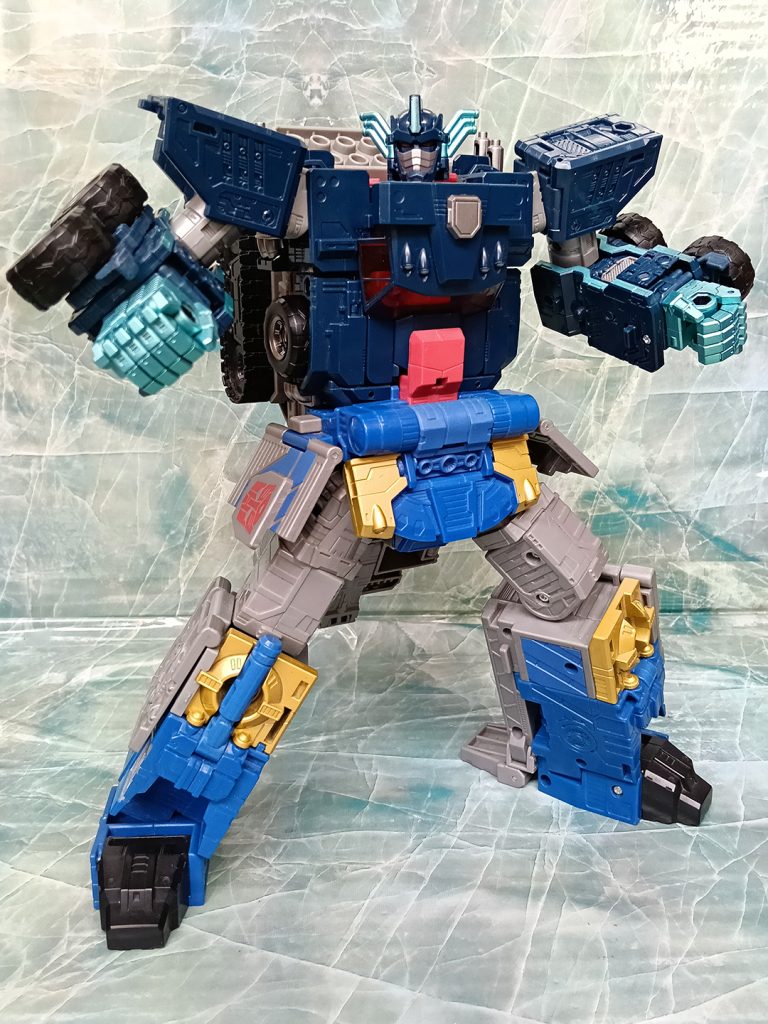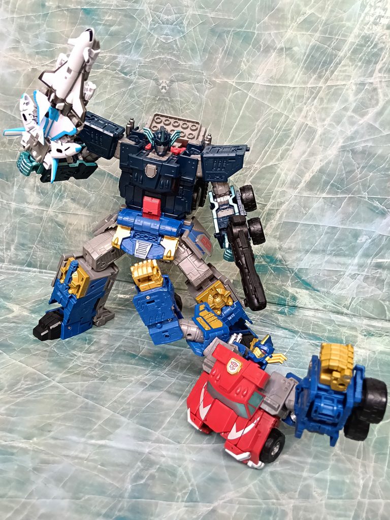 Su modo alterno está basado en un diseño conceptual para un transbordador espacial. Se ve sólido aunque tiene el mango de la espada visible, pero el original también era así. El modo robot parece el gordo del salón, pero finalmente tiene posabilidad que el original no tenía. Un dato rarazo… tiene articulación de cintura, pero queda anulada porque la cintura tiene una pieza al centro que inmoviliza el movimiento.