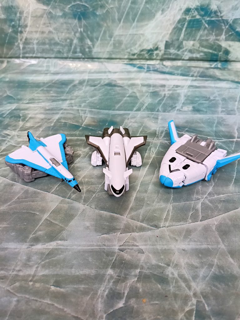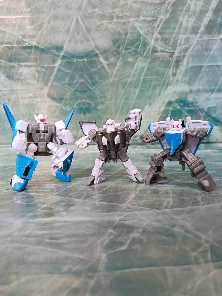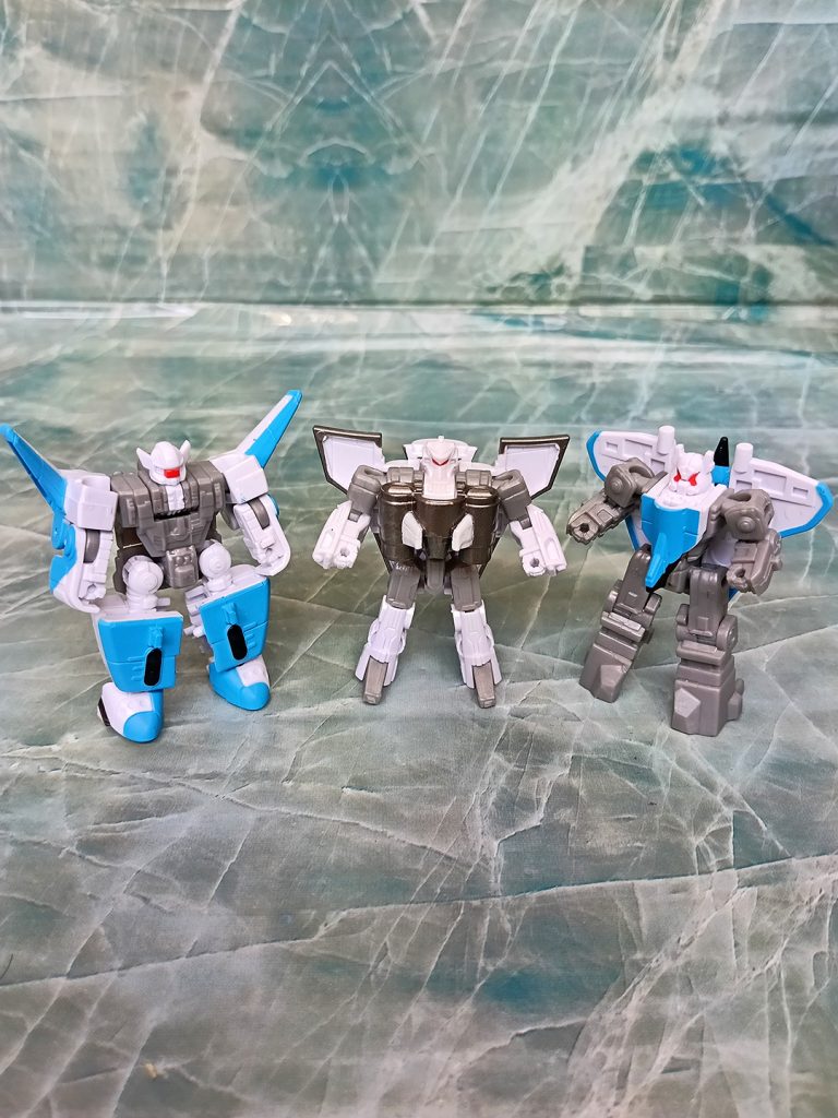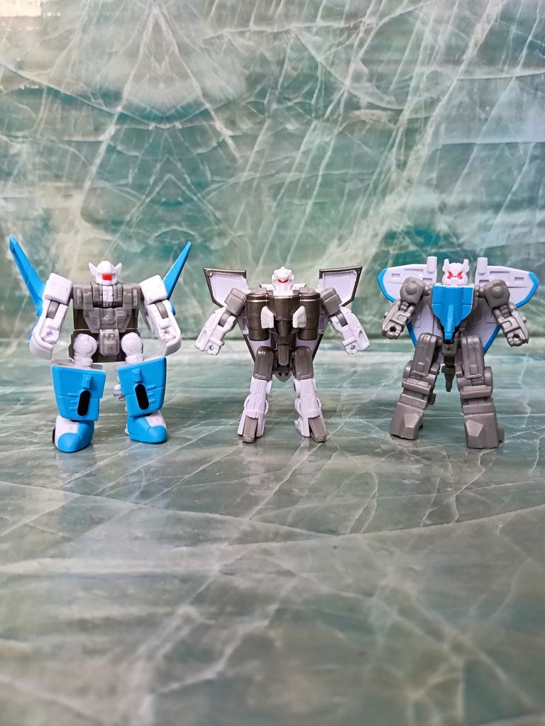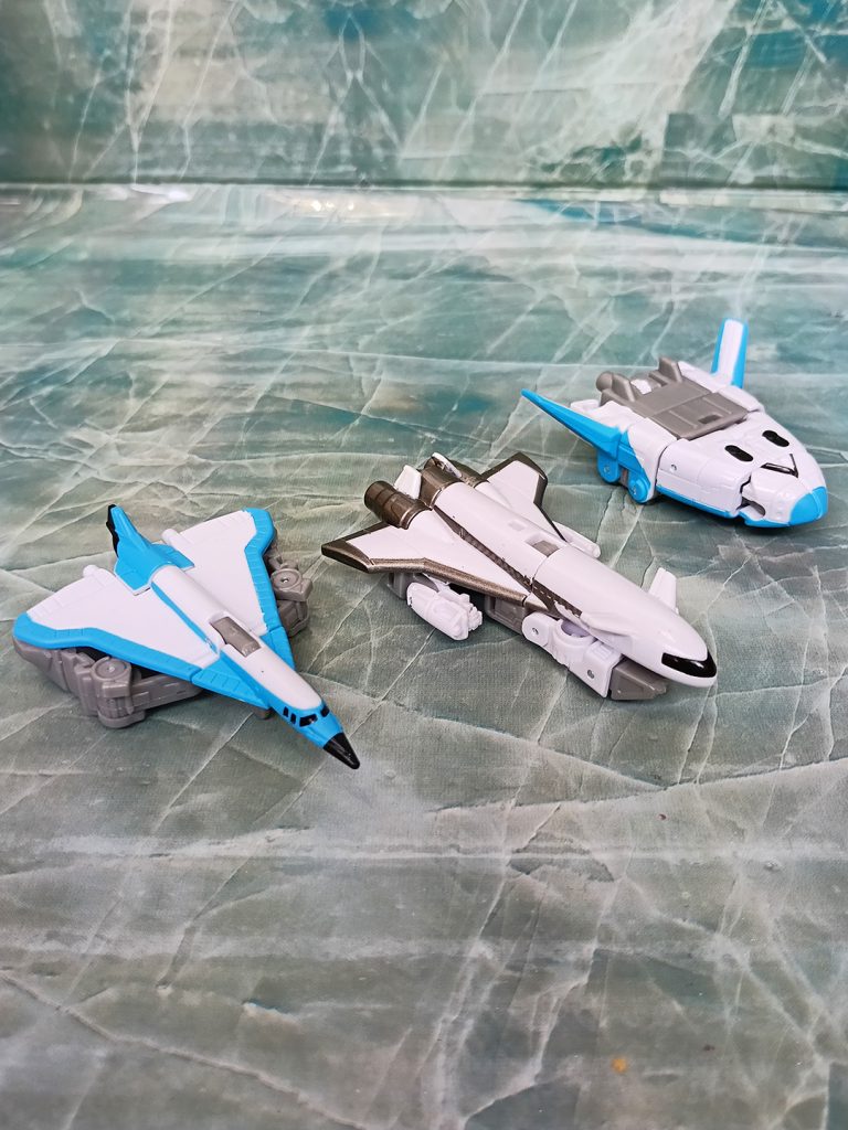 A versh, la bendita espadita se separa en 3 Minicons, noticia de último minuto, nadie la sabía je je je. De izquierda a derecha: Jetstorm, Runway y Sonar.