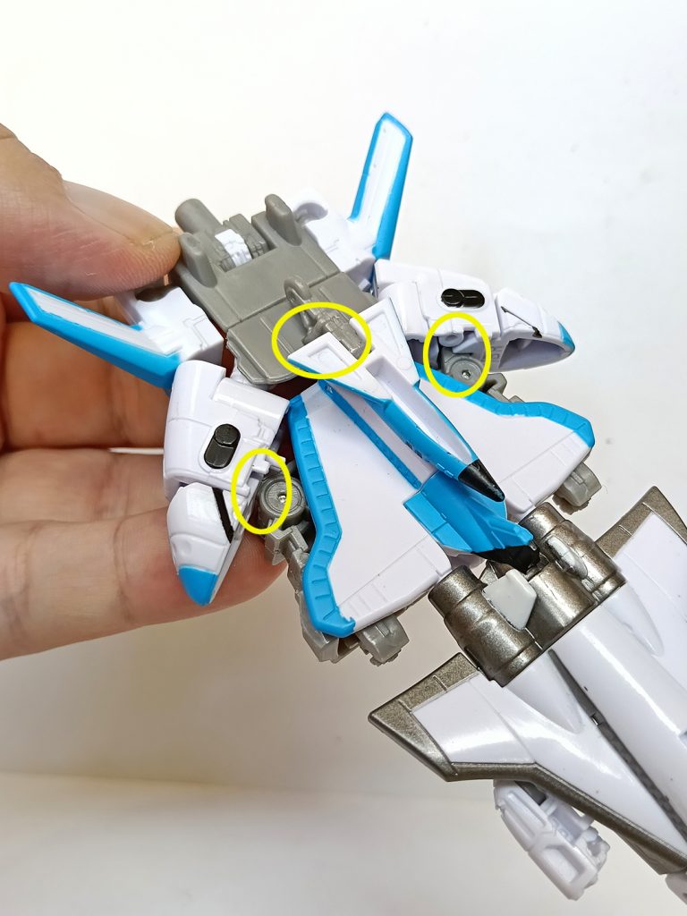 Jetstorm es el que no se ve tan subidito de peso, per ahora el robot es más notorio por debajo. El modo robot me parecer el mejor y más posable de los tres. Es el más polémico de todos por un tema de que hubo reportes de roturas al transformarlo, más exactamente para mover la cola del avión al pecho.