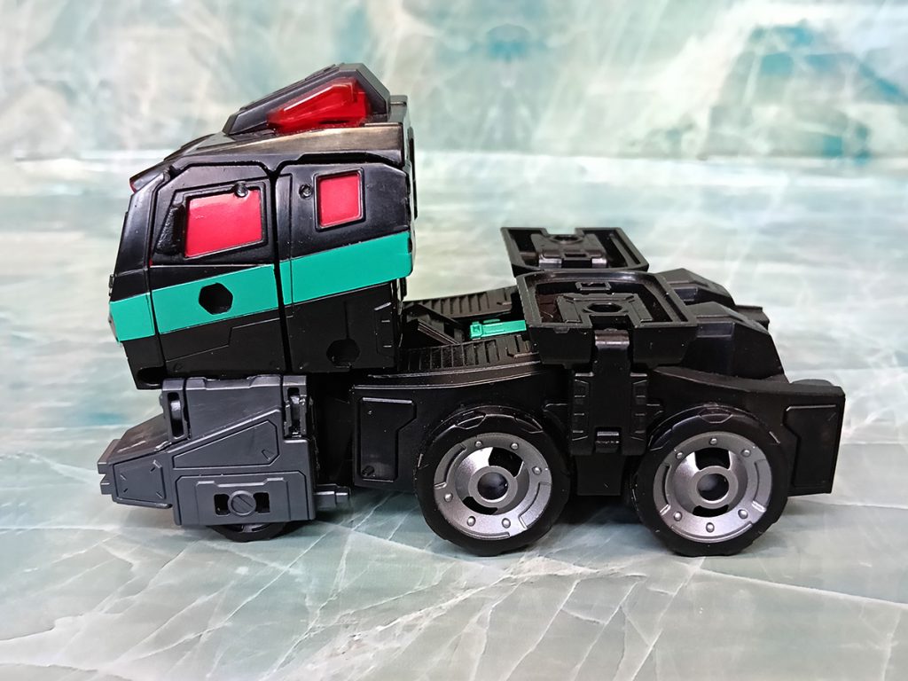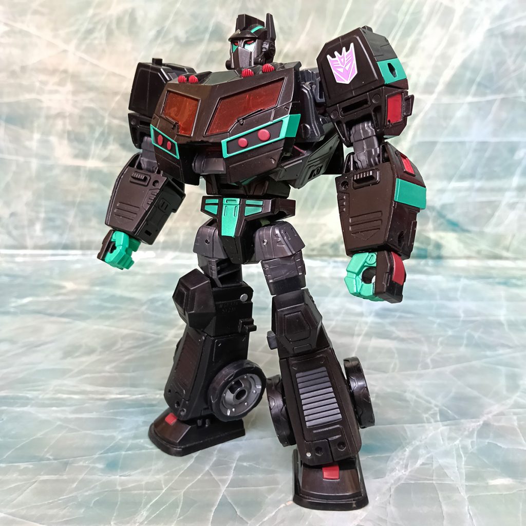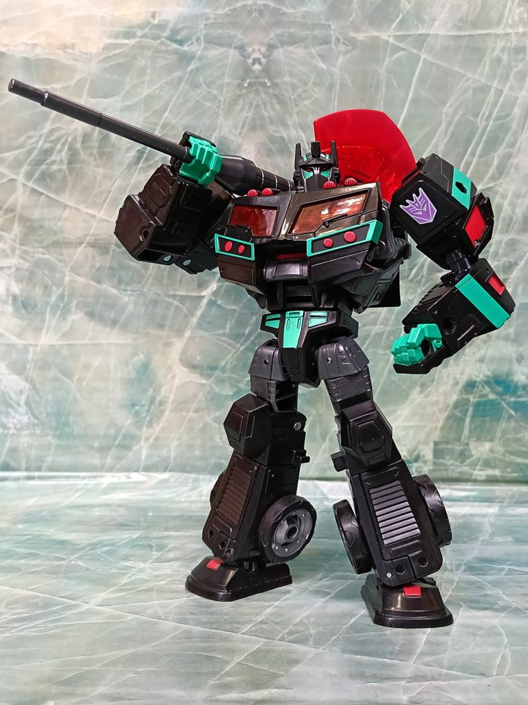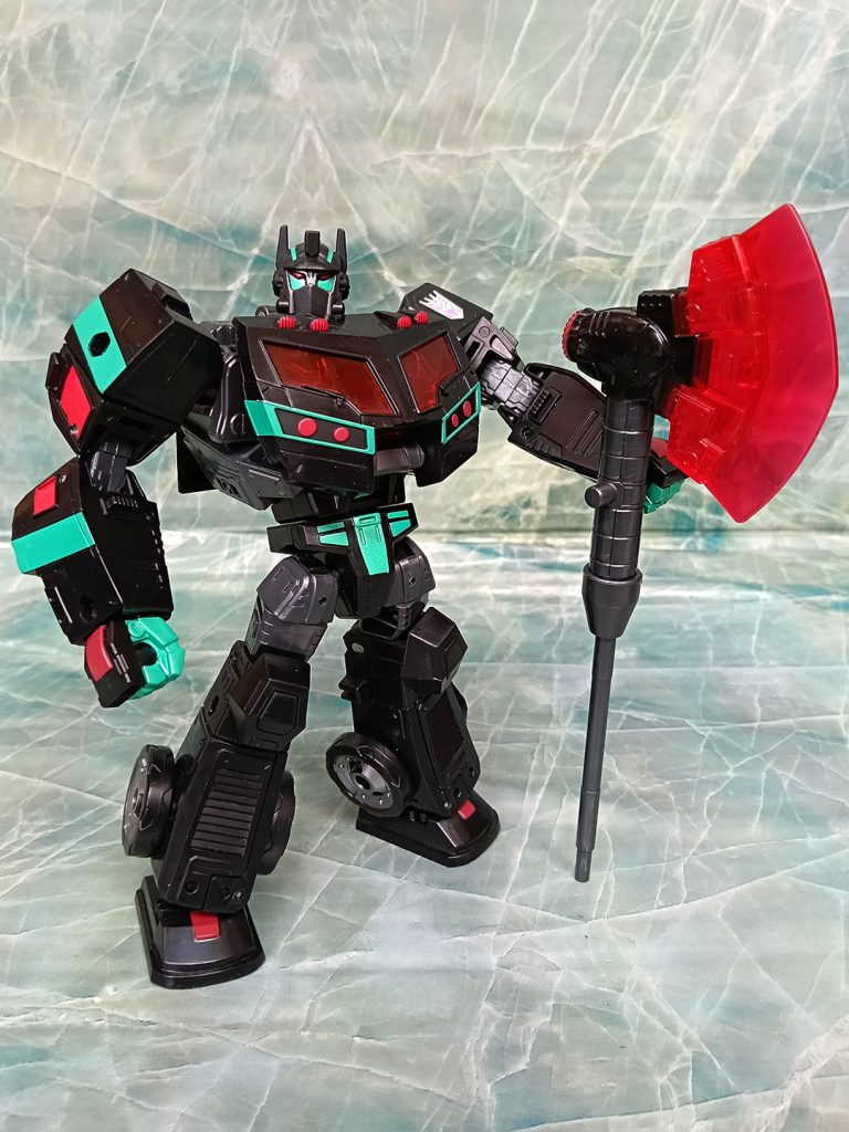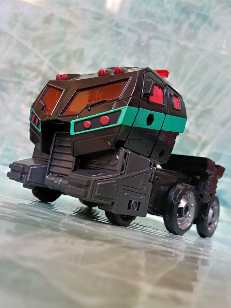 Hablando del deco, este Nemesis tiene algo que otros no tienen. El turquesa ha sido más generoso que en otras versiones. El deco original de Black Convoy siempre tuvo más turquesa que en los Nemesis Prime modernos donde hay más rojo.