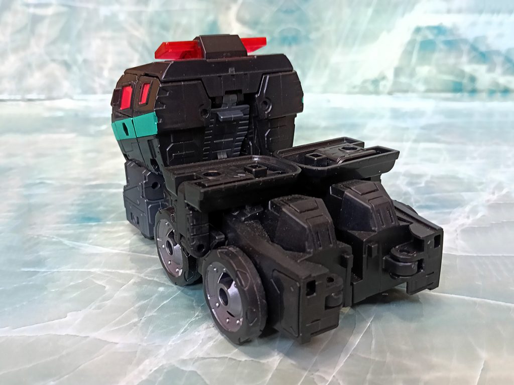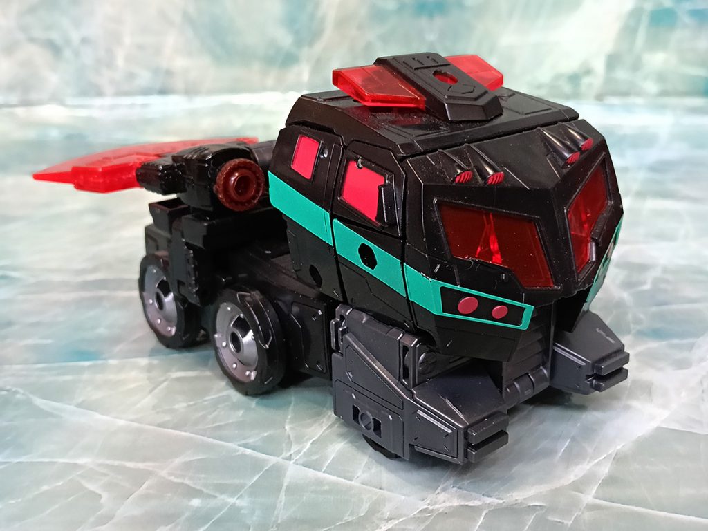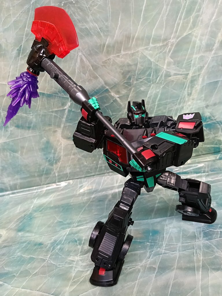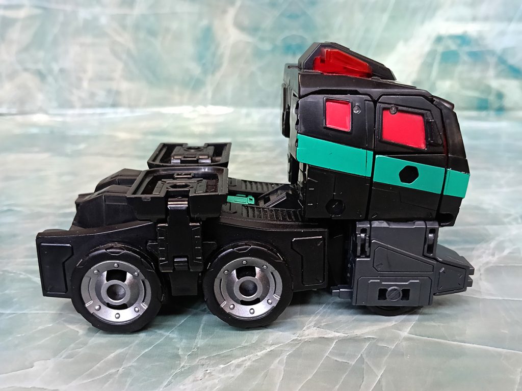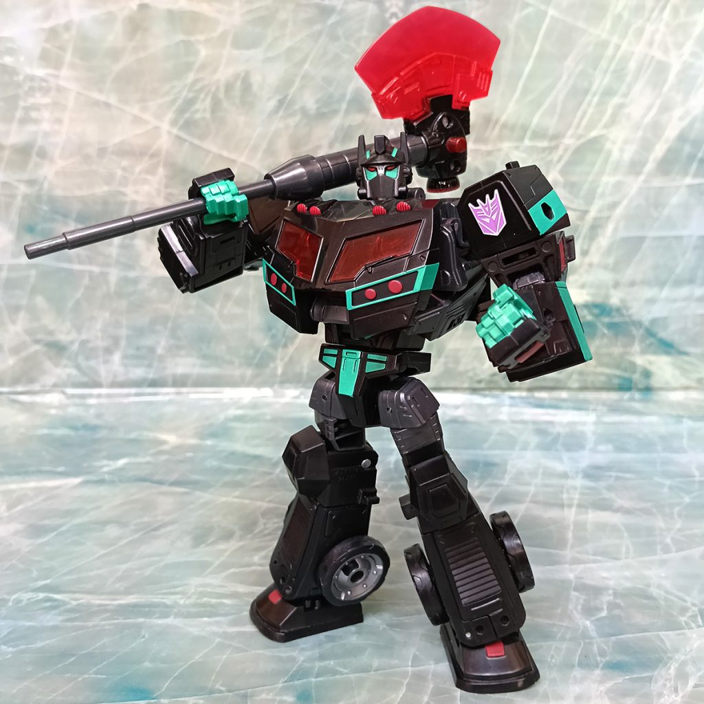 Hablando del deco, este Nemesis tiene algo que otros no tienen. El turquesa ha sido más generoso que en otras versiones. El deco original de Black Convoy siempre tuvo más turquesa que en los Nemesis Prime modernos donde hay más rojo.