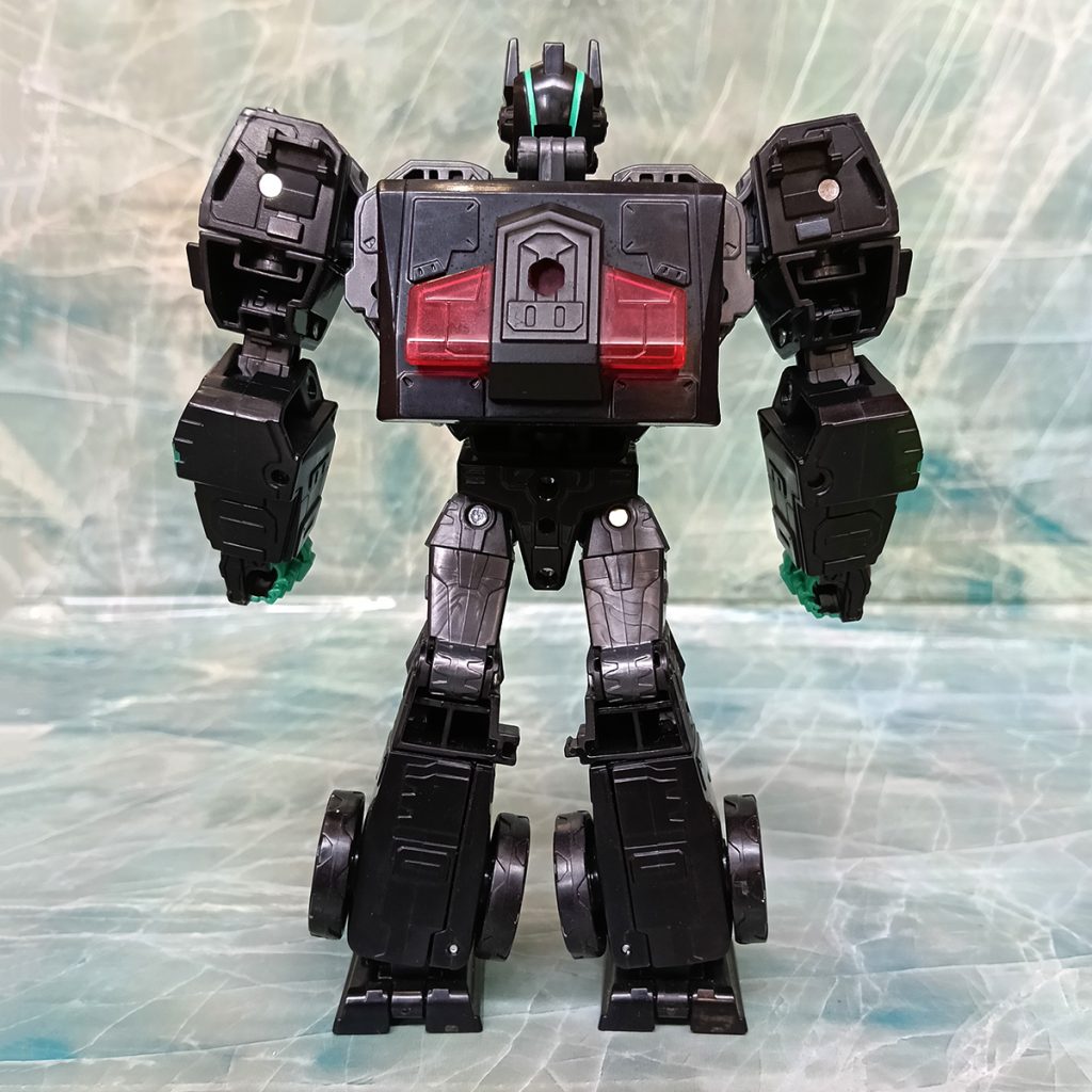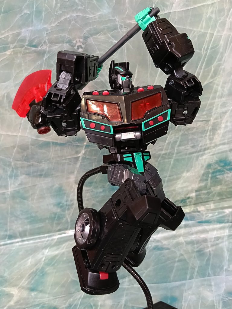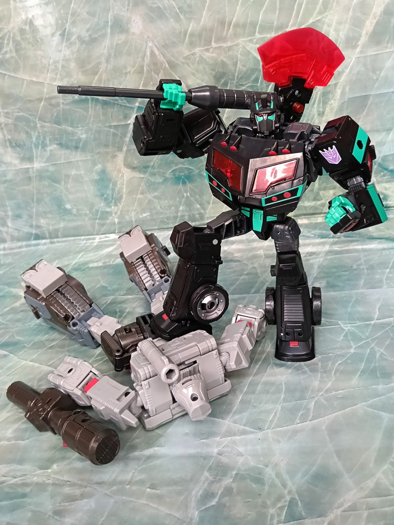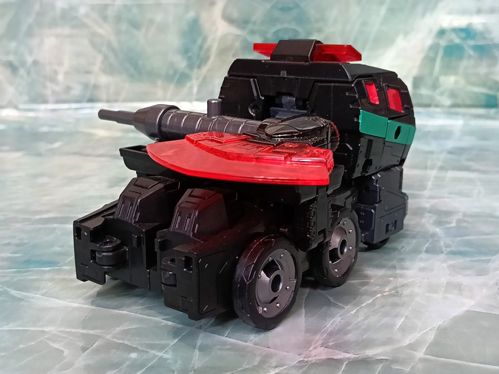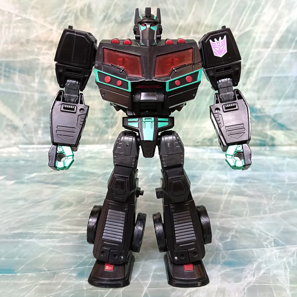 Hablando del deco, este Nemesis tiene algo que otros no tienen. El turquesa ha sido más generoso que en otras versiones. El deco original de Black Convoy siempre tuvo más turquesa que en los Nemesis Prime modernos donde hay más rojo.