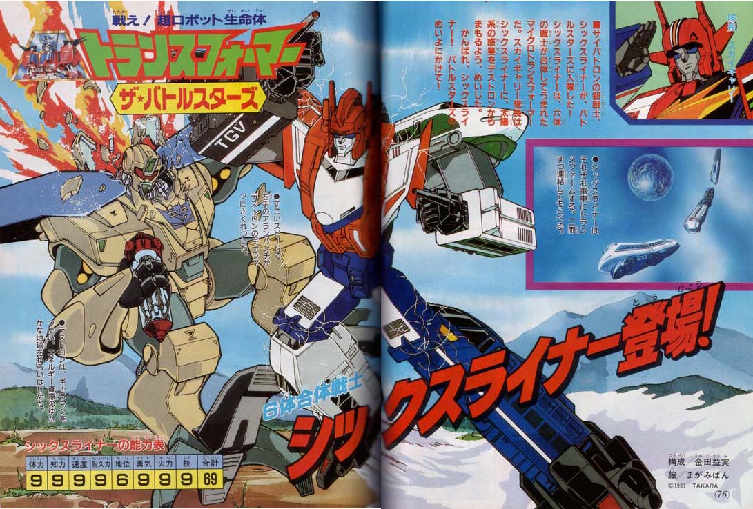 Otro Micromaster Combiner con un nombre recontra “original”. Sixtrain aparece exclusivamente en las páginas de un TV Magazine: “Operations Combination” que sería el último material y colección de Transformers G1 en Japón.