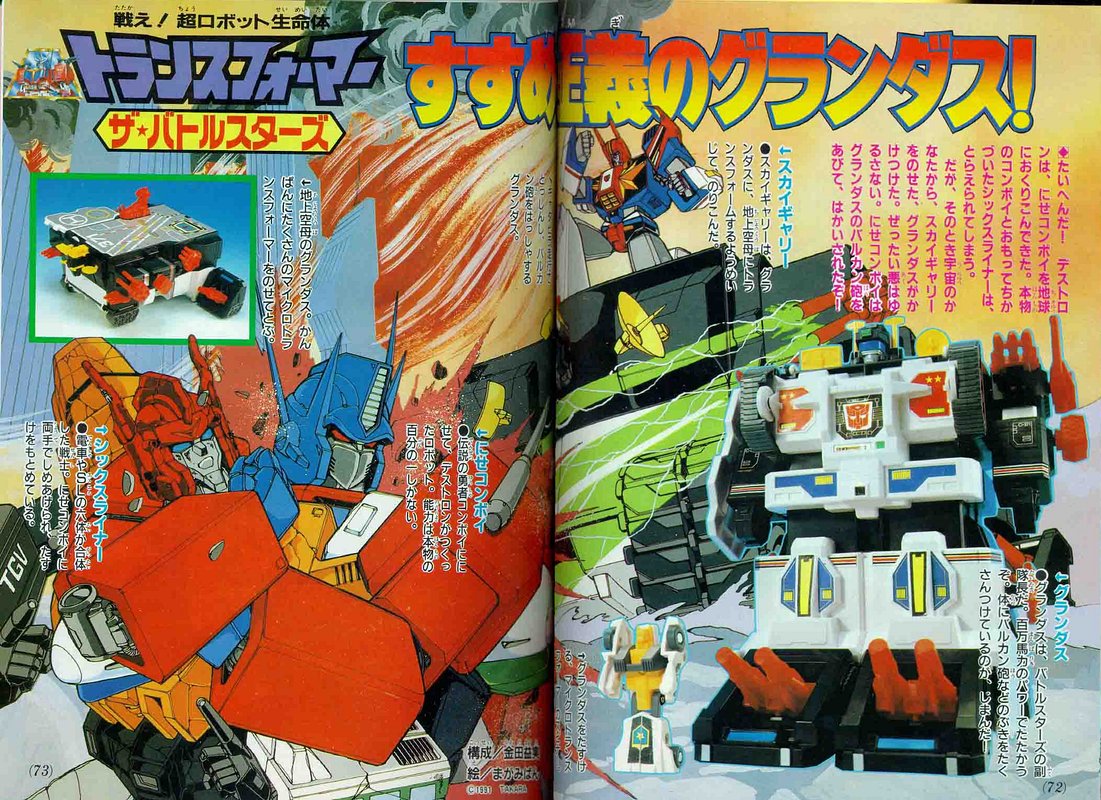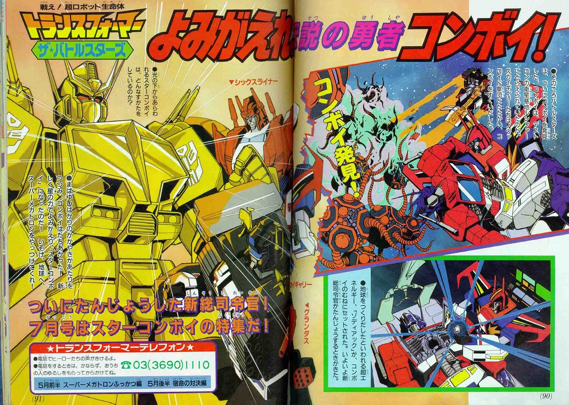 Como ya lo hemos comentado en el blog, la continuidad Japonesa de Transformers sobrevivió al fin de la animaciones y continuó con varias historias en manga y TV Magazine. Estas últimas eran más que nada ilustraciones con un texto que nos resumía las aventuras de nuestros robotitos.
